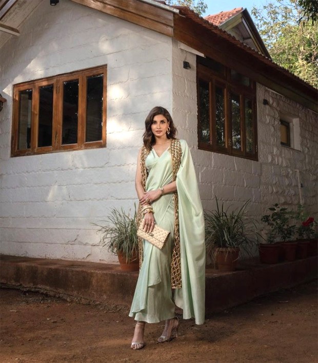 Diana Penty has always had a strong sense of style. The Cocktail star lets us insight inside her life and wardrobe through her Instagram account. And we can't quit admiring the things in her closet. Diana is undoubtedly one of the Bollywood stars who is finest dressed. The actor wears gorgeous short dresses and ethnic sarees with exquisite taste. The actor may be seen in a recent picture shoot sporting a pale green saree. Diana selected a saree from the 431 88 store's racks. Her sari is already draped, and a snap button on the waist secures the pallu so that it rests on the shoulder. She wore a saree with a blouse of a similar colour and plunging neckline. She added style to her classic sari ensemble with the boldly embroidered Honeycomb Jacket. Her skin tone complements the golden colour well, and it looks stunning on the mint saree. Her clothing is priced at Rs. 2,11,250.