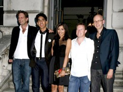 Photo Of Christian Colson,Dev Patel,Freida Pinto,Simon Beaufoy,Chris Dickens From Screening of 'Slumdog Millionaire' at Somerset House in London