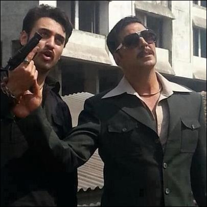 While Akshay manages to pull off the perfect don look with a coat, unbuttoned shirt and the sunglasses, Imran too seems to be flaunting a new hairstyle for the roll.