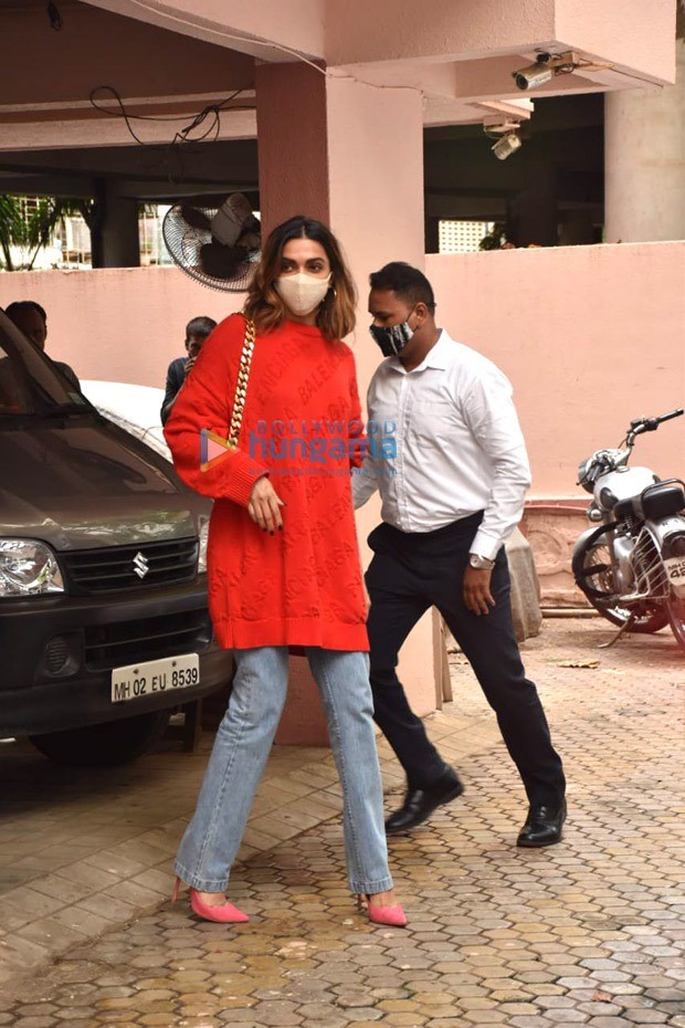 Deepika made sure to flaunt her fashion sense during this outing. She wore Balenciaga red oversized knitwear. This knitwear is worth Rs 57,582($773) according to the Farfetch website. She wore loose jeans and pink-colored stilettoes. This is a perfect example of color blocking.