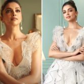 Padukone was seen in a beautiful frilly white dress. She wore a plunging neckline gown from Gauri and Nainika styled by Shaleena Nathani. The beautiful white dress with frills and a poofed, flared bottom. The frilly bits on the sleeves gave the dress some volume. The gown had soft polka dotted details, a signature Gauri Nainika style.