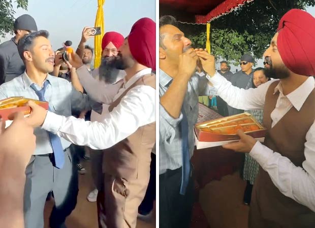 The camaraderie on the sets of the highly anticipated war drama Border 2 is winning hearts, as Diljit Dosanjh wrapped up his shooting schedule on Saturday with a sweet surprise — quite literally! The Punjabi superstar, who essays the role of Shaheed Nirmal Jeet Singh Sekhon, was seen feeding motichur laddoos to the cast and crew, including co-stars Varun Dhawan and Ahan Shetty, in a heartwarming behind-the-scenes moment.