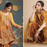 It is not surprising that some of Deepika Padukone's most talked-about outfits have been bright yellow Sabyasachi looks given her love of traditional Indian clothing. Last year, Deepika Padukone dazzled us at an occasion wearing a Sabyasachi yellow velvet kurta set. On the occasion of Holi 2021, Deepika just posted on Instagram to cheer up everyone's feed wearing a majestic sunset yellow velvet kurta set by Sabyasachi. The lightweight dupatta and the plush outfit also had gold accents. Deepika Padukone decided to accessorise her monochromatic Sabyasachi dress with ethnic jewellery. She chose bold navratna jhumkas embellished with orange jewels and hefty bangles that complemented the velvet kurta's warm colour. The actress chose her go-to makeup look, which included textured updo, nude lipstick, and dewy finish complexion. She chose gold pointed-toe heels to complete the ensemble.