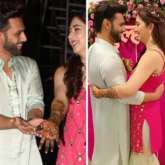 For the mehendi function, the bride was glowing in a hot pink outfit. Disha Parmar wore a sleeveless hot pink mirror work kurta with white sharara pants. She looked beautiful with her hands filled with henna. Rahul Vaidya, on the other hand, was seen in silk mint blue kurta pajama by his bride’s side. They both looked like a match made in heaven.