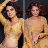 She consistently receives a perfect score of 10 out of 10 on our fashion boards thanks to her excellent attire and daring wardrobe experimentation. Another time, the movie diva looked amazing as she picked out a lovely yellow lehenga from Jigar Mali's racks. Her mustard chanderi lehenga comes with gold dori & aari embroidered floral motifs. The actor wore a matching blouse with the entire lehenga. She gave her lehenga an even more exotic look by draping a matching mustard oranganza duppata over her shoulders. The cost of her lehenga is Rs. 98,000. The actor's lone pair of accoutrements were a piece of golden nose rings. She chose to wear glammed-up, dewy makeup with smoky eyes, well-contoured cheekbones, dark lip colour and gentle curls in her mane.