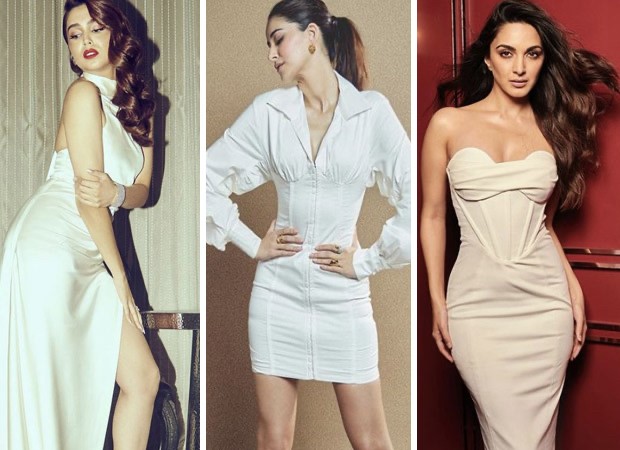Kiara Advani picked a white body-con dress for her appearance of Koffee with Karan season 7. The body-hugging fit emphasizes her curves, with a strapless, sweetheart neckline and a flattering underwired bust for delicate draping. The bodice has corsetry boning to tighten the waist and is made of power mesh for a close fit. The skirt descends to an elegant midi length, lending the dress a romantic vibe. Her dress is from designer label House of Cb and is worth Rs. 18,027. The actress wore her hair down and showed off her no make-up look. She finished off her ensemble with golden pumps.