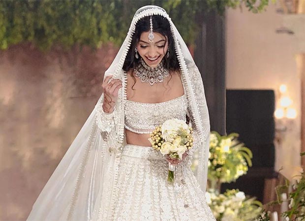 Alanna Panday looked dreamy in a white lehenga and paired it with a netted white dupatta. Keeping her overall look off-beat, Alanna opted for striking diamond jewellery and gave a very modern twist to the idea of a traditional bride.