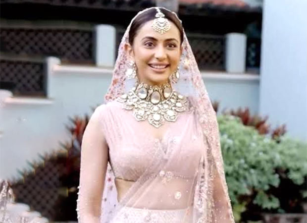Rakul Preet Singh opted for a sleek and slim pastel lehenga, featuring a full-sleeved blouse and embellished lehenga with floral details all across the fabric. She layered the look with a netted dupatta consisting of floral work in patches. The actress brought a touch of royalty by pairing her ensemble with heavy statement jewellery.