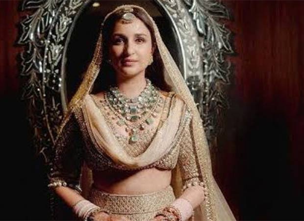 Parineeti Chopra opted for a dreamy lehenga in the hues of gold and ivory, featuring heavily detailed work all across her lehenga and blouse. She boosted the royalty by pairing it with a netted dupatta, and accessorised her look with golden kaleere, pink choodas, and gemstone jewellery.