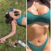 Recently, the Keeping Up With The Kardashians star posted some alluring pictures on her Instagram Handle. She wore a forest green bikini and accessorized it with a golden cross and a hip chain. She wore a cap that had her sister Kendall Jenner’s tequila brand ‘818’ written on it. She also posed with the tequila bottle.