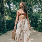 Pooja blessed fans with pictures from her vacation as she donned the perfect boho outfit. She paired neutral pieces together. She donned a sweetheart neck bralette with wide leg tie dye pants. Pooja showed off her toned mid riff in the picture. The crochet panelled pants looked stunning as they were paired with pooka shell neck pieces, a haystack bag and sunnies. The look is the perfect pick for a beach day and Hegde nailed it. She styled the brown bikini top from Ookioh worth ₹3,700 and a summer charms neck piece worth ₹6,600!