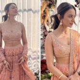 Attending a wedding is just as fashionable, especially if you know the bride or groom well. Even if you are not the bride or groom, it is a challenge to look your best. Thank goodness, you have us on your side. We have identified Rakul Preet Singh as one of the most fashionable wedding guests so you may get some style ideas while you dance the night away. Rakul Singh certainly has a knack for building the ideal collection of formal attire. You can be sure that the actress will look stunning in either a traditional sari or a seductive lehenga. Sana Barreja's peach lehenga was worn by Rakul Preet Singh at a wedding recently, and she shared pictures of the outfit on Instagram. Her lehenga, which is a striking peach colour, has a hand-embroidered sleeveless blouse with a seductive plunging neckline and classic flower embroidery in silver. She wore the lehenga with a hand-highlighted peach magnolia patterned skirt. She finished the lehenga with a matching dupatta to accent it.