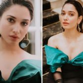 Tamannaah Bhatia is constantly stealing the show at the Melbourne Indian Film Festival. Her most recent post has an off-shoulder dress with the celebrity having a diva moment. This voguish moment is all that we adore. Tamannaah shared photos of her glamorous attire for the Indian Film Festival of Melbourne (IFFM) 2022 on Instagram on Sunday. The pictures show the celebrity busy posing for the camera while wearing a statement outfit. She is wearing attire from the Safiyaa clothing line. The silk satin dress worn by Tamannaah Bhatia has an emerald green and black colour scheme. It has an off-the-shoulder bow-shaped neckline that gives the rest of her outfit a sensual appearance. Additional features include a calf length hem, a front slit that is knee-high, and a bodycon fit that wonderfully accentuates Tamannaah's contours. Her dress is worth Rs. 1,17,813.