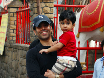 en Tusshar Kapoor with his son Laksshya snapped at Shree Mukteshwar Temple